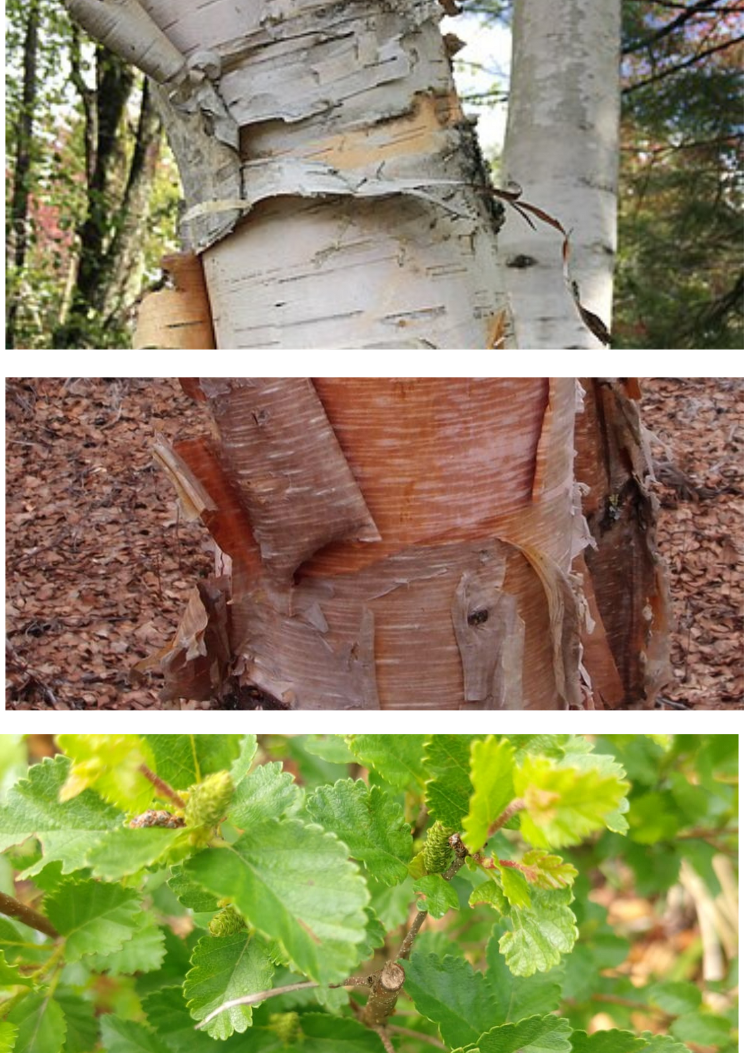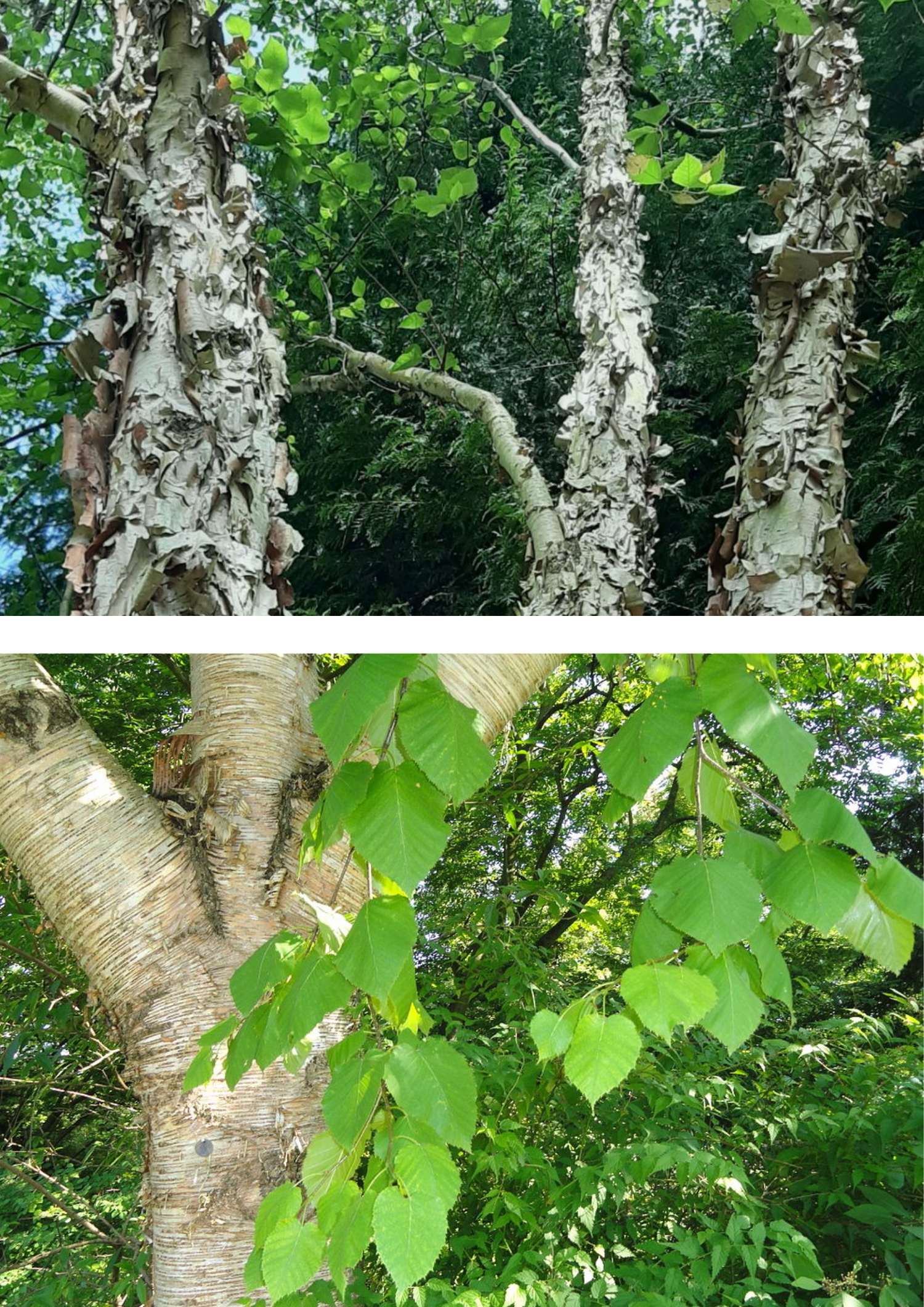 bērziem atšķiras ar pelēku mizu, kas iekrāsojas vara krāsā, lobās, reizēm var